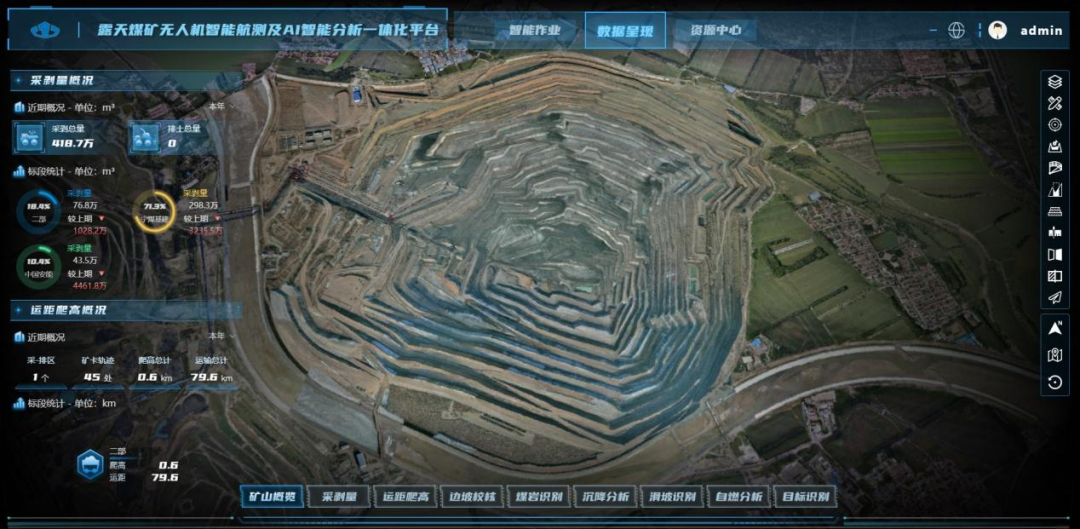 该系统的应用已取得显著的经济与社会效益:在作业模式上,通过无人机自动机库实现24小时无人值守作业,数据生产自动化率超95%,测绘人员减少80%,作业效率提升200%,年节约成本近千万元;在数据处理上,依托高性能算力中心实现了实景三维模型的自动化建模更新,构筑了精准的“三维数字底座”,建模效率提升80%,支持10平方公里范围日更新,使采剥规划设计周期缩短60%;在安全与效能上,实现了土方剥离量等关键指标的一键精准计算,验收效率提升300%,计算误差率降至0.1%以内;边坡安全监测、滑坡巡检、煤层自燃识别等AI算法准确率超90%,实现了安全风险的早期精准预警,安全管理效率提升近10倍。